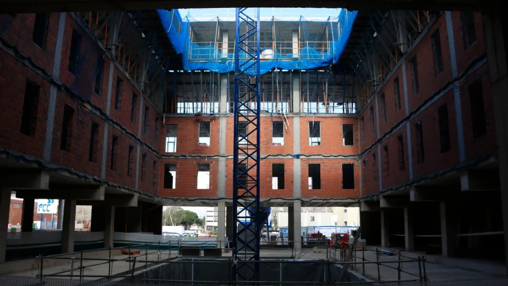 Son 13.000 m² con 200 habitaciones divididas en dos módulos simétricos e independientes. Cada módulo tiene una planta baja con un patio central y, alrededor, el que serán el comedor, una sala de día para actividades, otra para la televisión, una biblioteca, un gimnasio, una sala de formación con ordenador, lavandería y WC.